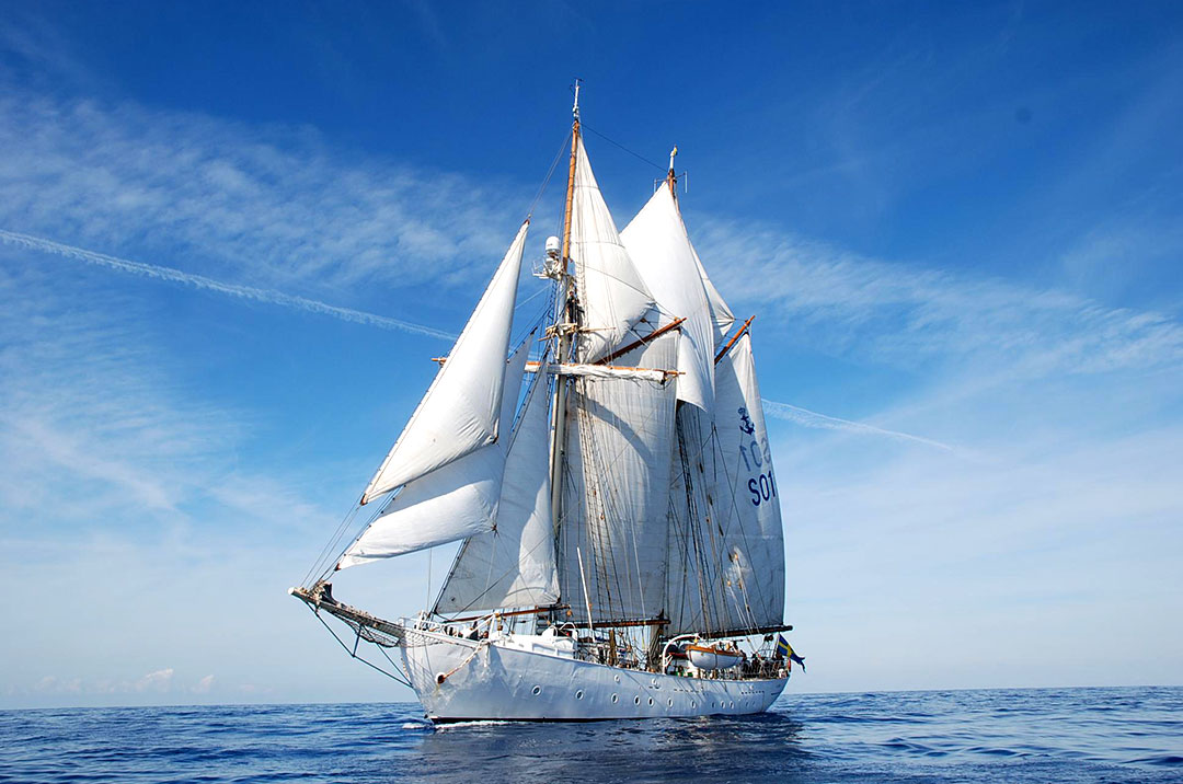 GLADAN is one of two sail training ships operated by the Swedish Navy. Along with her sister vessel, FALKEN, she was constructed in 1947 to succeed earlier ships used for the same purpose. Designed as a square topsail schooner in the traditional Baltic pilot style, GLADAN serves as a platform for naval cadets to gain hands-on experience in seamanship, navigation, and leadership while voyaging around the globe.